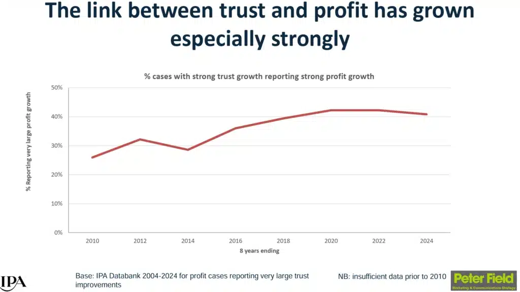 The connection between building genuine trust and reporting strong profit growth has nearly doubled in strength since 2010, according to IPA research tracking hundreds of real businesses.