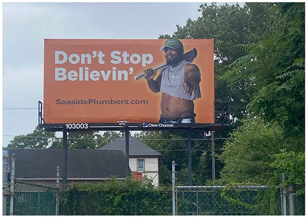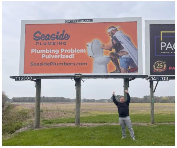 Well, Jay Mistry, who is one of the Wizard of Ads partners and is an artist, has been working on our campaign for billboards, for Seaside Plumbing, and his last three boards were exactly that. And you know what? I’m going to throw them up. Yeah, they’ll intermix here.