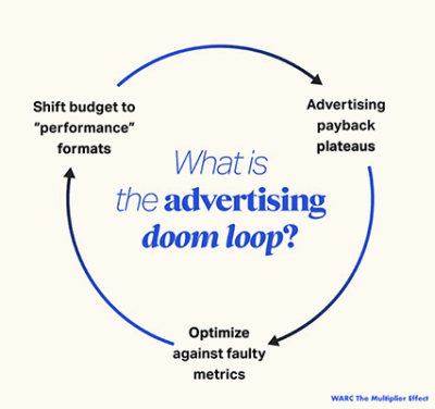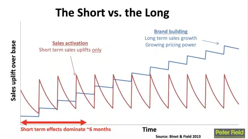 - Cut any marketing that isn’t directly attributable to revenue. (Meaning, they cut the stuff that actually builds customer preference and brand.)
